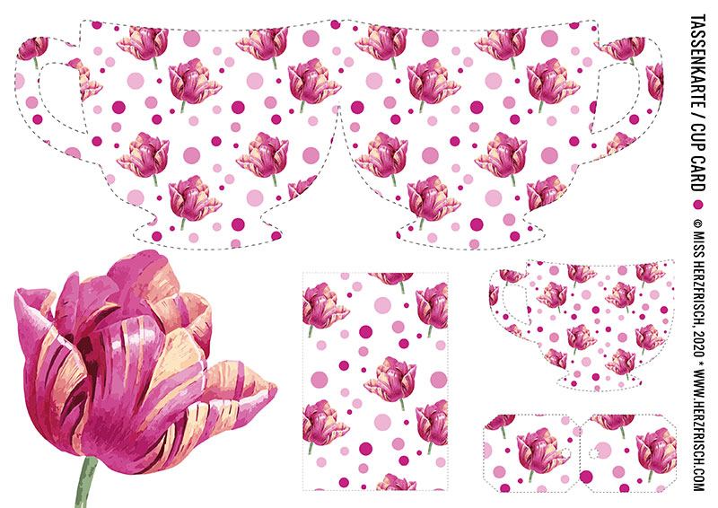 Ich habe euch ein paar neue Tassenkarten mit bunten Tulpenmustern gemacht, mit denen ihr ein paar aufmunternde Worte und fröhlich bunte Grüße an alle verschicken könnt, die ihr im Moment nicht seht.