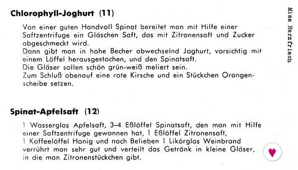 „Chlorophyll-Joghurt“ und „Spinat Apfelsaft“.