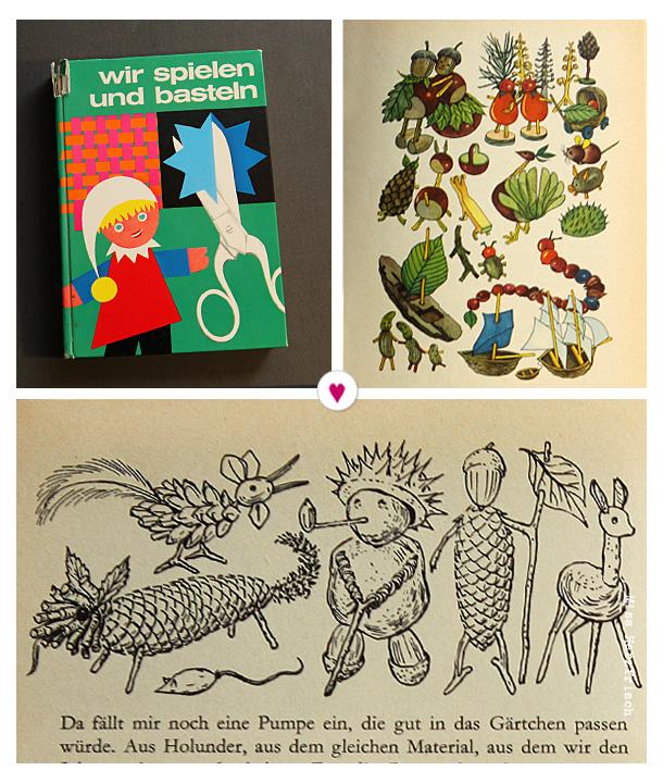 Die meisten Bastelbücher habe ich auf dem Trödelmarkt gekauft. Wobei ich bei manchen gar nicht genau weiß, ob ich sie nicht nur gekauft habe, weil ich die alten Illustrationen so sehr mag…
