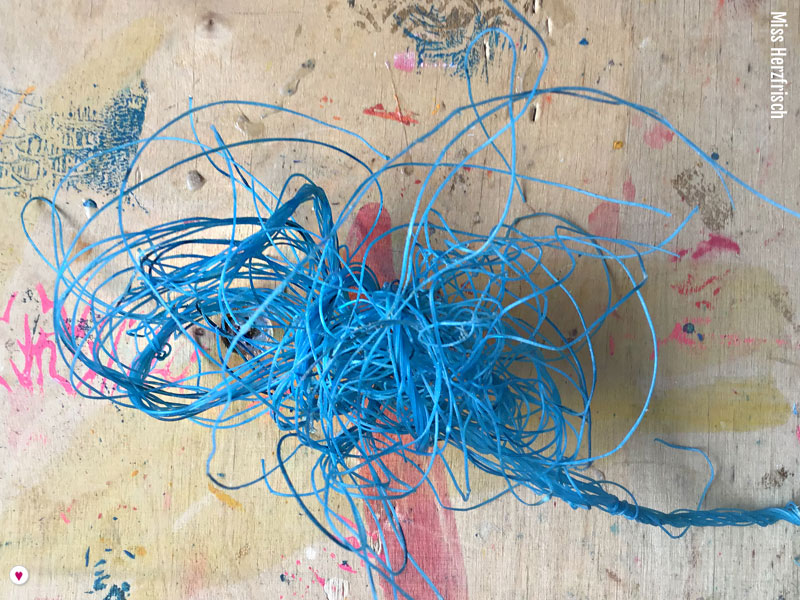 Das kleine Buch habe ich übrigens mit diesen blauen Seilen gebunden, die ich am Strand gefunden habe.