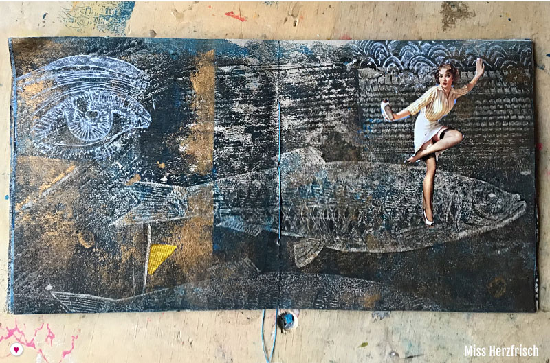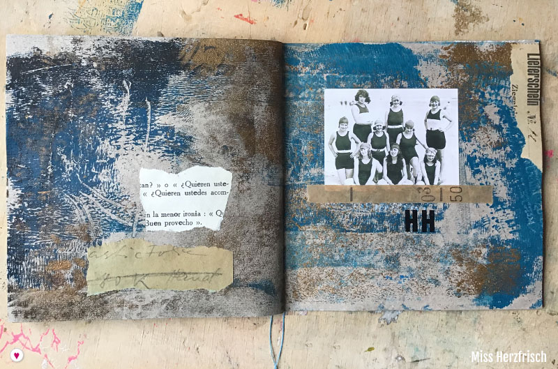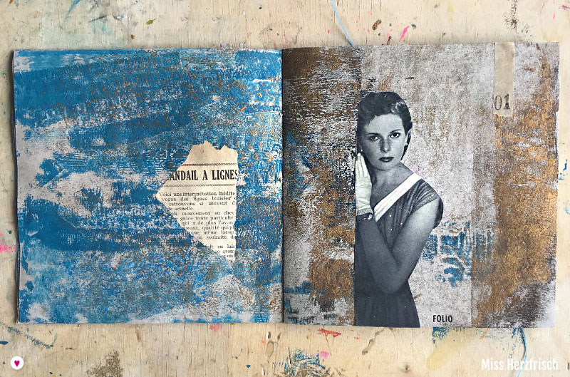 Gelliprint-Workshop: Blaues Sommertagebuch Teil 2 – Effekte mit Gold und Weiss