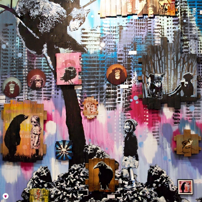 Das holländische Künstlerpaar arbeitet mit Graffiti-Farbe und Schablonen und hat einen ganz eigenen und besonderen Stil. Auf der riesigen Installation auf der ART.FAIR findet fügen sich zahlreiche Einzelobjetkte mit dem Hintergrund harmonisch zu einem neuen Ganzen zusammen, die die beiden „Alles-ist-möglich-Kunst“ nennen.