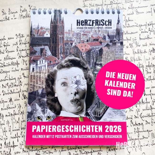 Blog News I Inspirationen I Projekte NEWS & TermineUnterwegsCollage & Mixed MediaProjekteUpcyclingFundstückearchiv Studio Herzfrisch News & Events Yoga & Soulbook 2026 Workshop Weiterlesen Retro- / Upcycling Weihnachtsmarkt im Studio Herzfrisch am 06.12.25 Weiterlesen Onlinekurs Rabenpost – 30 Tage Mixed Media Magie startet am 01.11.25 Weiterlesen Die neuen Papiergeschichten Kalender sind da * Wuppertal Edition Weiterlesen WOGA – Open Studio am 27. / 28.09.2025 Weiterlesen Vintage Papier Flohmarkt im Studio Herzfrisch am Samstag 11.10.25 Weiterlesen Schnipseltisch und Druckwerkstatt am 12. / 13.09.2025 bei Wuppertal 24h live Weiterlesen 12×12 für Gaza – Kunst machen als Stimme der Solidarität am 18.08.25 im Studio Herzfrisch Weiterlesen Meine Lieblingsmaterialien für Gelliprint Weiterlesen Ausstellung Sketchbook.Hamburg Countdown bis 19.07.25 Weiterlesen Strandgut Mixed-Media Collagen und der Perfektionismuswahn Weiterlesen Ausstellungstipp: „Die Ästhetik des Fundstücks“ Weiterlesen 1 Jahr Studio Herzfrisch … ein Blick zurück und neue Pläne Weiterlesen Einladung zur Ausstellungseröffnung im Studio Herzfrisch am 14.06.25 Weiterlesen Ausstellung Vintage Postcard Challenge 10.05 – 25.05.25 im Studio Herzfrisch Weiterlesen Unterwegs mit dem historischen Schienenbus nach Beyenburg Weiterlesen artfulmemorieschallenge April 2025 Weiterlesen Einladung zur Print Party unserer Buch-Veröffentlichung am 26.04.25 Weiterlesen Flohmarkttermine 2025 rund um Wuppertal Weiterlesen Open Call: Vintage Postcard Challenge 2025 Weiterlesen Collage Wochenende 10.05. & 11.05.25 im Studio Herzfrisch Weiterlesen „Sketchbook.Hamburg on Tour“ zu Besuch im Studio Herzfrisch in Wuppertal Weiterlesen Mein Vintage Xmas Artjournal 2024 Weiterlesen Bunte Herbsttage im Botanischen Garten Wuppertal Weiterlesen 1 2 Vor » Unterwegs … Reisetagebücher, Reiseinspirationen, Ausstellungstipps Ausstellungstipp: „Die Ästhetik des Fundstücks“ Weiterlesen Unterwegs mit dem historischen Schienenbus nach Beyenburg Weiterlesen Bunte Herbsttage im Botanischen Garten Wuppertal Weiterlesen Streifzug durchs Tal: Kukuna I der Offene Garten Weiterlesen Wochenrückblick – unterwegs in Wuppertal Weiterlesen Unterwegs auf dem bergischen Jakobsweg Weiterlesen Spaziergang durch Porto … auf der Suche nach schönen Azulejos Weiterlesen StreetArt Inspirations Tour Hamburg * Schanzenviertel Weiterlesen Montags Moodboard #01: Erinnerungen an Portugal Weiterlesen Kunst mitten im Wald – ein Spaziergang im Skulpturenpark Waldfrieden Weiterlesen Impressionen von der Art Düsseldorf 2020 Weiterlesen Porto Streetart Inspirationen und unsere Entdeckungen für Papierliebhaber Weiterlesen Inspirationen von der Art Düsseldorf 2019 Weiterlesen Projekt Stadtentdecker Wuppertal: Draußen und drinnen Weiterlesen Projekt Stadtentdecker Wuppertal: verwittert – der Bahnhof Unterbarmen Weiterlesen Projekt Stadtentdecker – die Themen für Januar Weiterlesen Projekt 2018: Stadtentdecker werden – macht ihr mit? Weiterlesen Typographie Inspiration: 69m2 Düsseldorf Weiterlesen Berlin ick vermiss dir… Weiterlesen Auf den Spuren der Garnindustrie in Wuppertal … Weiterlesen Das Glück der kleinen Dinge… Weiterlesen Sylter Impressionen Weiterlesen Drei 12tel-Blicke auf Wuppertal Weiterlesen London calling – Mama wann fahren wir zur Queen? Weiterlesen 1 2 Next » 12×12 für Gaza – Kunst machen als Stimme der Solidarität am 18.08.25 im Studio Herzfrisch Weiterlesen Strandgut Mixed-Media Collagen und der Perfektionismuswahn Weiterlesen artfulmemorieschallenge April 2025 Weiterlesen Open Call: Vintage Postcard Challenge 2025 Weiterlesen Mein Vintage Xmas Artjournal 2024 Weiterlesen Miss Herzfrischs Collagen beim KUNSTKIEZ Wuppertal am 05.09.2024 Weiterlesen Gelliprint Faces – Magazin-Druckrausch Weiterlesen Post-it! Ausstellung in Gent, Belgien Weiterlesen Mystère – mein Juni Collagebuch in schwarz-weiß Weiterlesen Mein MittwochsMix Schnipselbuch und Schnipseleien vom Collagetreffen Weiterlesen Schnipselversammlung * Mittwochsmix Weiterlesen Schnipsel treffen Pink * Mittwochsmix Weiterlesen Mein Gelliprint Musterbuch zum MittwochsMix Weiterlesen Collagecollaboration mit Katrin Weiterlesen The Prophetic Pictures – mein blaues Sommersehnsuchtsbuch … Weiterlesen The Pink Book – ein Challenge Projekt mit meiner Tochter Weiterlesen Tulpenfieber – Musterspielereien Weiterlesen Eulenliebe Weiterlesen Aus dem Nähkästchen … Weiterlesen Mustermittwoch: Pilzmuster Postkarten Weiterlesen Mustermittwoch: Pilze und Raben Weiterlesen 10 Dinge, die ich über jetzt über Raben weiß … Weiterlesen Oktobercollagen Ideensammler – der Rabe … Weiterlesen Träumen vom Meer – meine 15fünfzehn Sommerpost Weiterlesen 1 2 3 4 5 6 7 8 Next » Papiergeschichten, Collagen, Inspirationen Ausstellung Vintage Postcard Challenge 10.05 – 25.05.25 im Studio Herzfrisch Weiterlesen artfulmemorieschallenge April 2025 Weiterlesen Open Call: Vintage Postcard Challenge 2025 Weiterlesen Mein Vintage Xmas Artjournal 2024 Weiterlesen Schnipsel- und Collagetisch bei Wuppertal 24h live am 13. / 14.09.2024 Weiterlesen Mein 100 Tage Projekt: 100 Espressotassen Weiterlesen Die Meeresfische wollen auf Reisen gehen – seid ihr dabei? Weiterlesen Novembermuster: 30days30patterns Challenge – ein Rückblick Weiterlesen Collagecollaboration mit Katrin Weiterlesen Projekt WORLD COLLAGE ATLAS Weiterlesen Ein neues Projekt: das artlaboratorium Weiterlesen Oktobercollagen Ideensammler – der Rabe … Weiterlesen Träumen vom Meer – meine 15fünfzehn Sommerpost Weiterlesen Projekt Stadtentdecker Wuppertal: Draußen und drinnen Weiterlesen Projekt Stadtentdecker Wuppertal: verwittert – der Bahnhof Unterbarmen Weiterlesen Bunte Schnipseltische im 15fünfzehn Kreativlabor Weiterlesen Projekt 2018: Stadtentdecker werden – macht ihr mit? Weiterlesen Altes und Neues – neue Projekte 2018 und ein kurzer Rückblick Weiterlesen 15fünfzehn Collagens