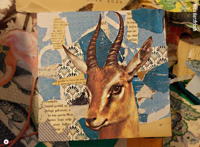 15 Uhr: Mixed-Media-Collagen aus verschiedenen Papieren in Kombination mit Kreide, Acrylfarben und Markern