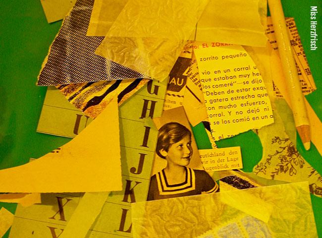 15 Uhr: Collagen, Experimentieren mit Schrift und Drucken mit Text und Vintage-Motiven