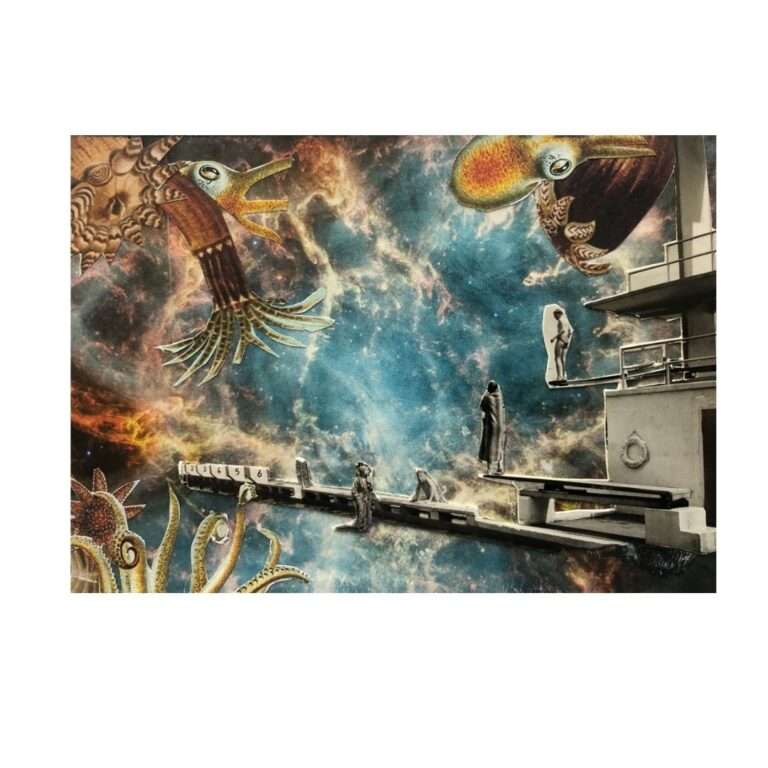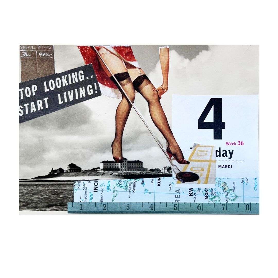 Seit heute zum Worldcollageday 2025 hängen sie alle bei mir im Studio Herzfrisch – 22 verschiedene tolle Karten von 17 Künstlern auf alten Vintage Postkarten.