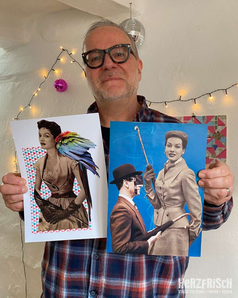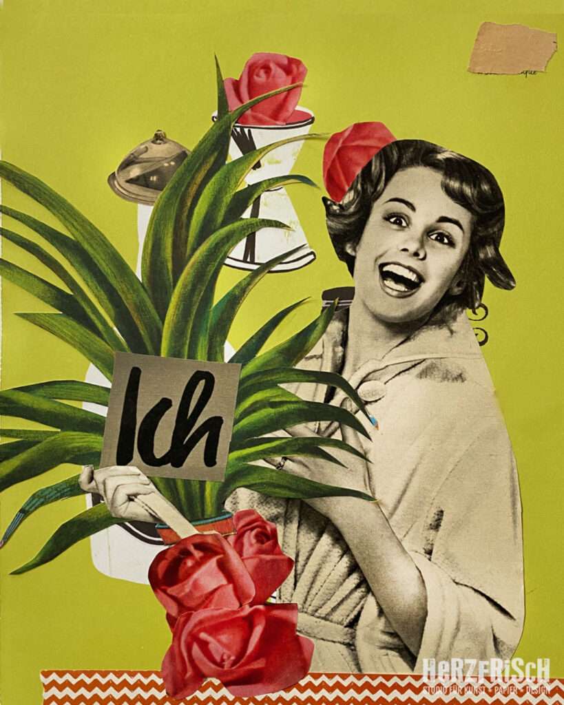 Hier zeige ich euch einige der entstandenen Collagen – und ein paar der herrlich skurrilen Anzeigen aus den 50er-Jahren, die uns immer wieder zum Lachen gebracht haben.