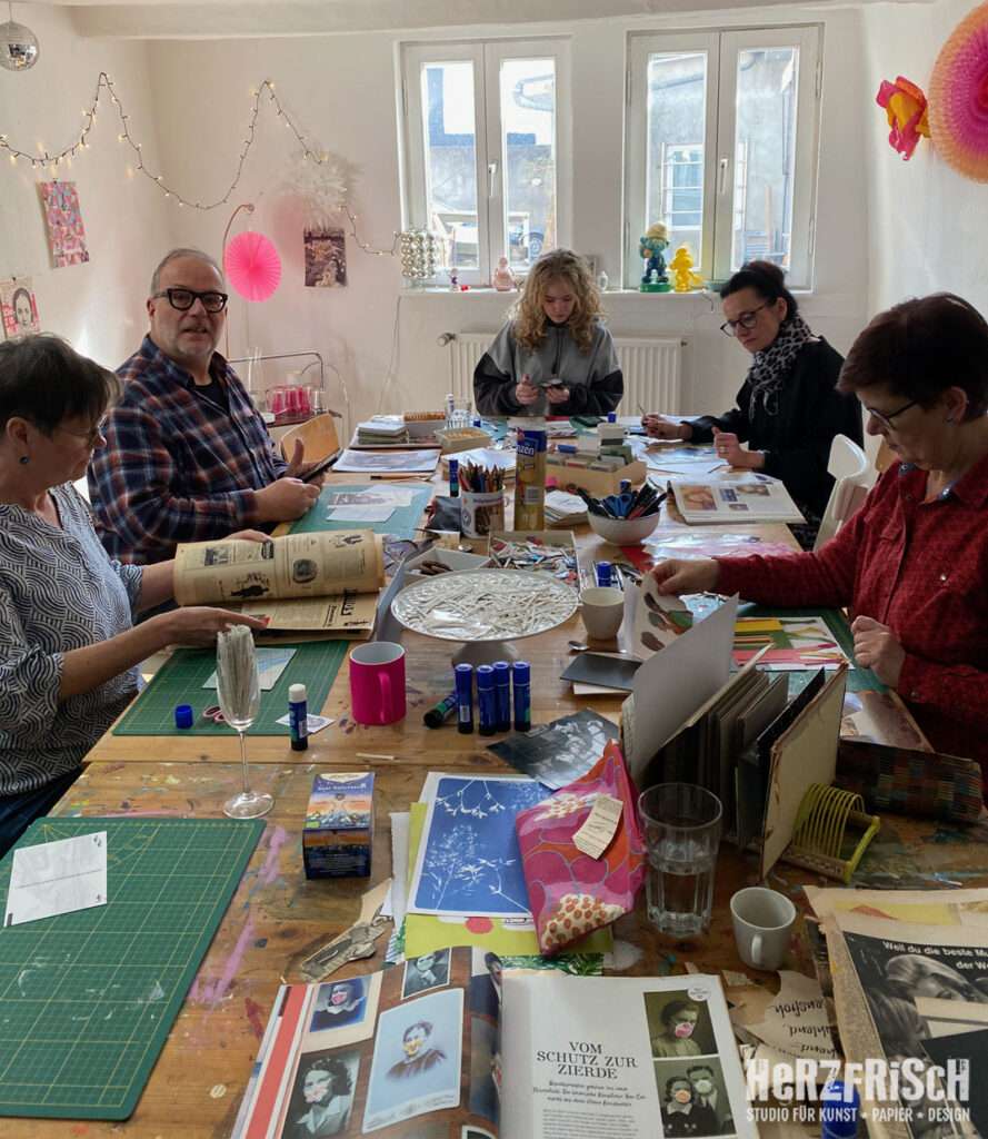 Zum diesjährigen Weltfrauentag haben wir uns zu einer schönen, kreativen Runde am Collagetisch im Studio Herzfrisch getroffen.