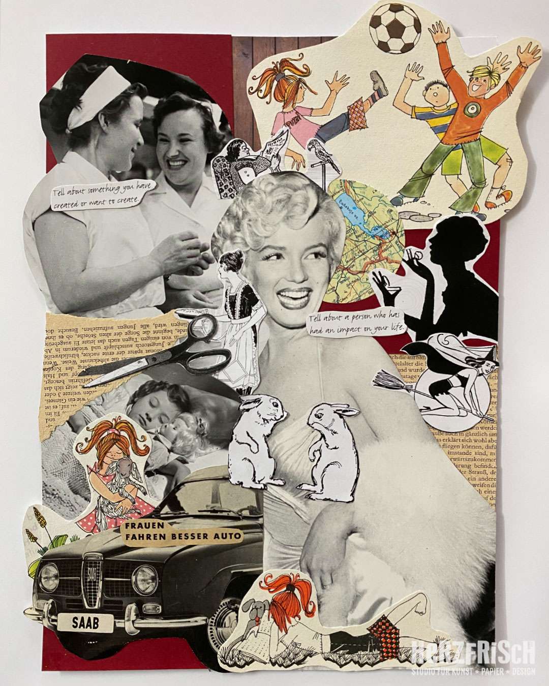 Collagetisch zum Weltfrauentag: Kreative Momente & Retro-Anzeigen