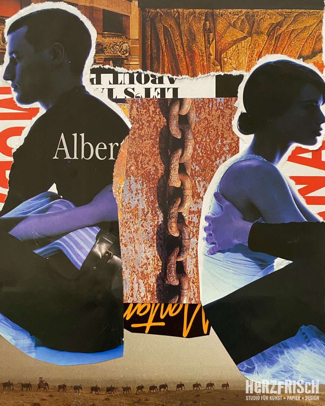 Die Collagen, die dabei entstanden sind, sind so vielfältig wie die Menschen am Tisch: verspielt, nachdenklich, bunt, humorvoll und manchmal auch ein bisschen rebellisch. Jede Collage erzählt ihre eigene kleine Geschichte.