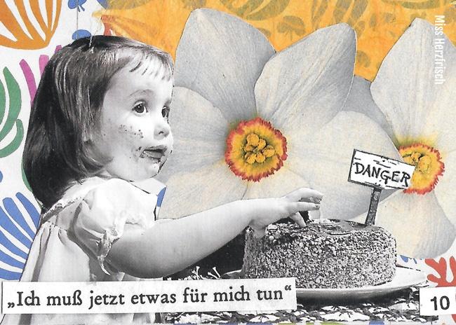 Ist das genial! :-D „Zum Glück etwas Erfreuliches“ und „Ordnung“ passen genau in mein derzeitiges Leben, gefolgt von „Ich muss jetzt etwas für mich tun“. Super klasse, deine Collagen und Hut ab, dass du das so konsequent durchziehst. Freu mich schon auf die nächsten!