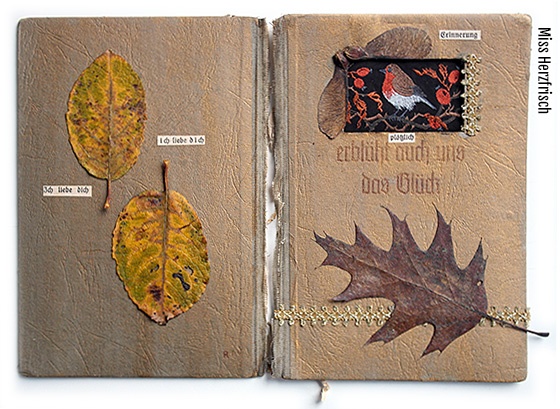 Inspirated from Ariane’s drawing challenge invitation „autumn“, I was looking for autumn finds. I collected all kind of things, which I found and made these collages out of it.