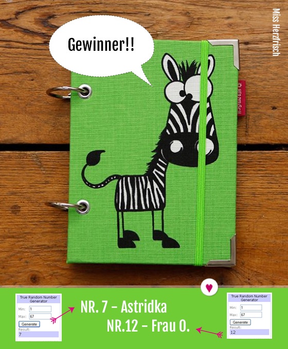 Herzliche Glückwünsche an die beiden Gewinnerinnen Astridka und Frau O.
