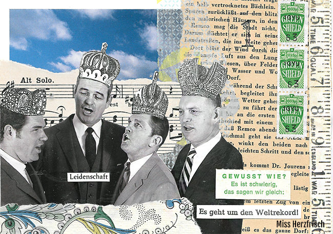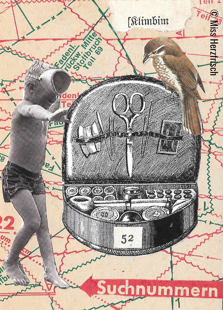 Miss Herzfrischs Collage und Mixed Media Galerie Miss Herzfrischs Collage und Mixed Media Galerie Bunte Geschichten aus dem Land der Papierschnipsel, Fundstücke und Fischen. CollagenDigitale CollagenPostkartenHosentaschenkunstMinicollagenMatchboxesBücherartjournals Meine Kiste voller Geschichten … 365 Tage bin ich auf alten Postkarten durch die Welt gereist … Kleine Collagen für die Hosentasche im ATC 1 Format #hosentaschenkunst Kleine Collagen im Format 10 x 10 cm #minicollagen Bei der Arbeit * At workKAUFENAlfred, der VogelflüstererKAUFENLIFEverkauftEr kann nicht aufhörenKAUFENZauberpflanzenKAUFENZwillingeKAUFENBei der Arbeit * At workKAUFENBei der Arbeit * At workKAUFENBei der Arbeit * At workKAUFENBei der Arbeit * At workKAUFENCollagenCollagen66 Kleine Schatzhüter Bücher Artjournals