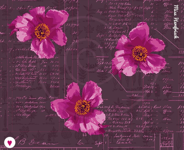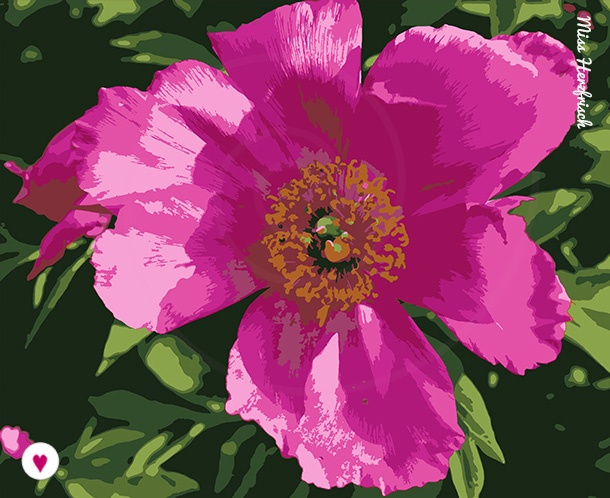 Am letzten Pfingstwochenende ist mir im Botanischen Garten diese Pfingstrosenschönheit begegnet und mir spukte die Idee im Kopf herum, daraus ein Muster zu machen – vielleicht weil die knalligen Farben mich so an meine Lieblingsbettwäsche erinnern.