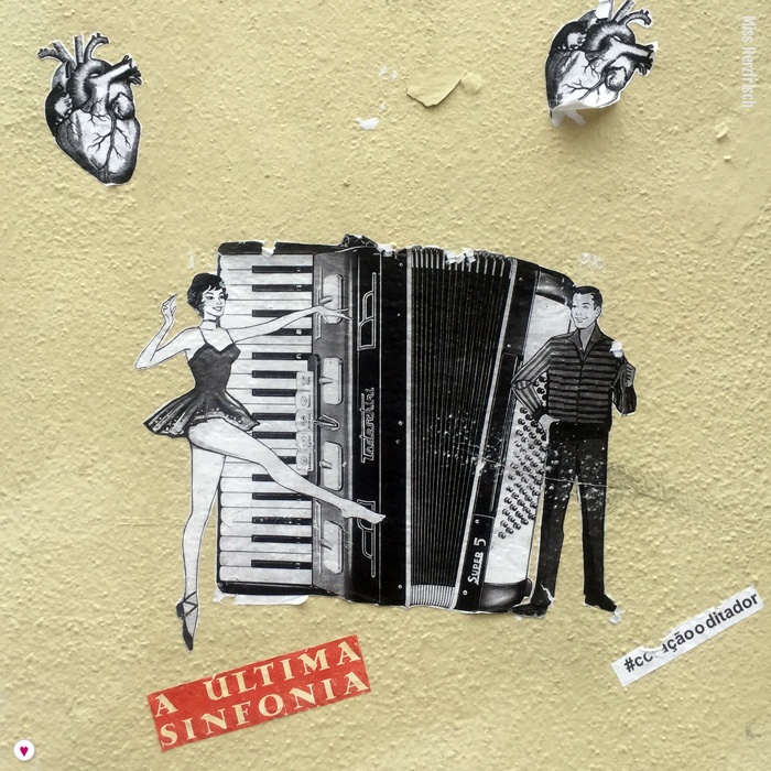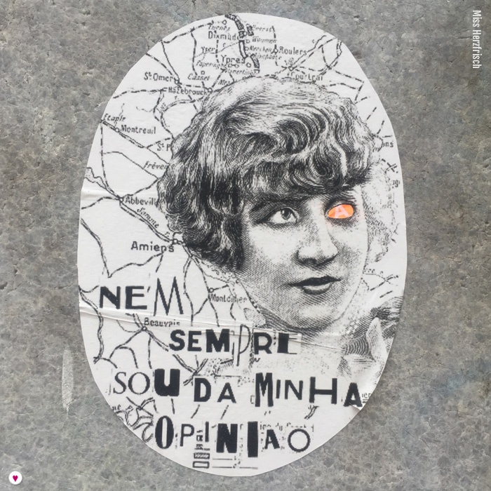 Viele Streetart Collagen stammen von der Künstlerin Coração o Ditador … mir gefällt der Gedanke, statt auf Papier Kunst direkt auf Häuserwände zu kleben sozusagen als Freiluft Galerie, um sich bekannt zu machen… ihr Stil gefällt mir sehr … Collagen im surrealistischen Stil :)
