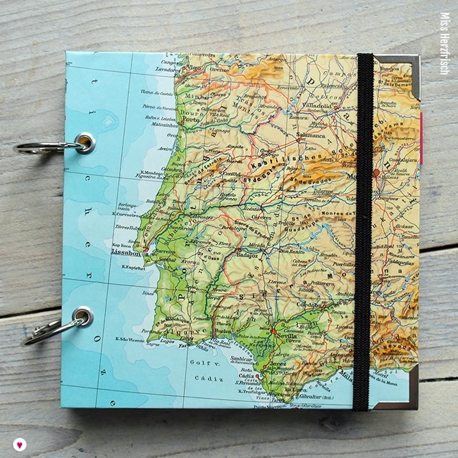 - der Umschlag ist ist vorne und hinten mit eines Karte Ihres Wunschlandes bezogen