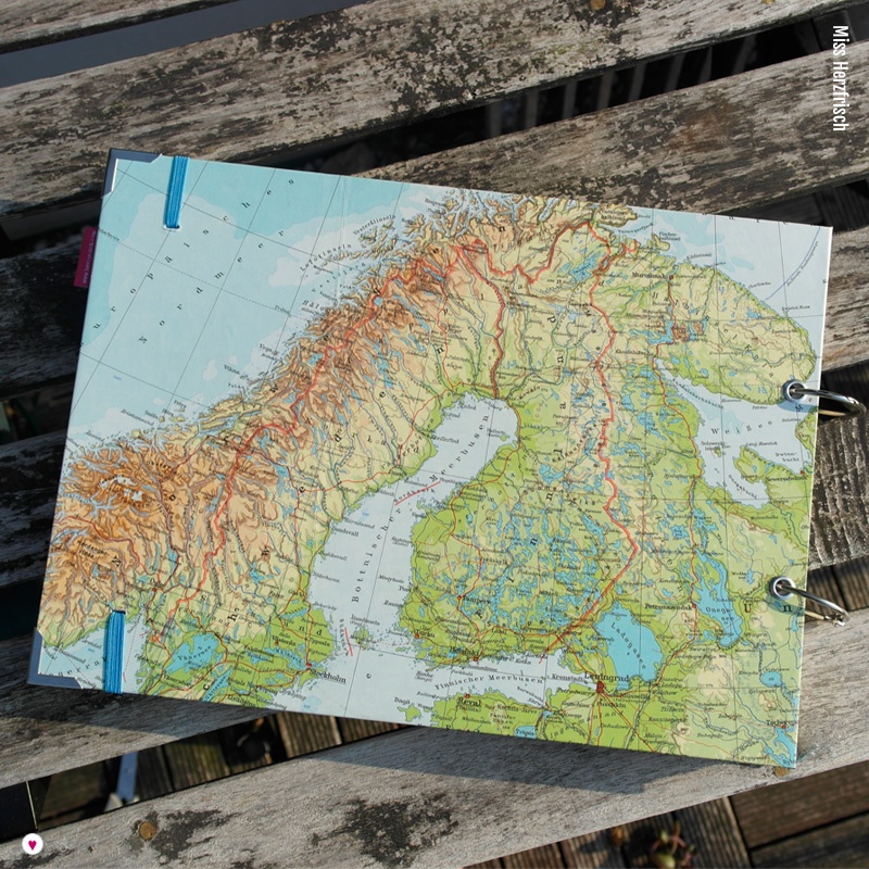• der Umschlag ist ist vorne und hinten mit eines Karte Ihres Wunschlandes bezogen
