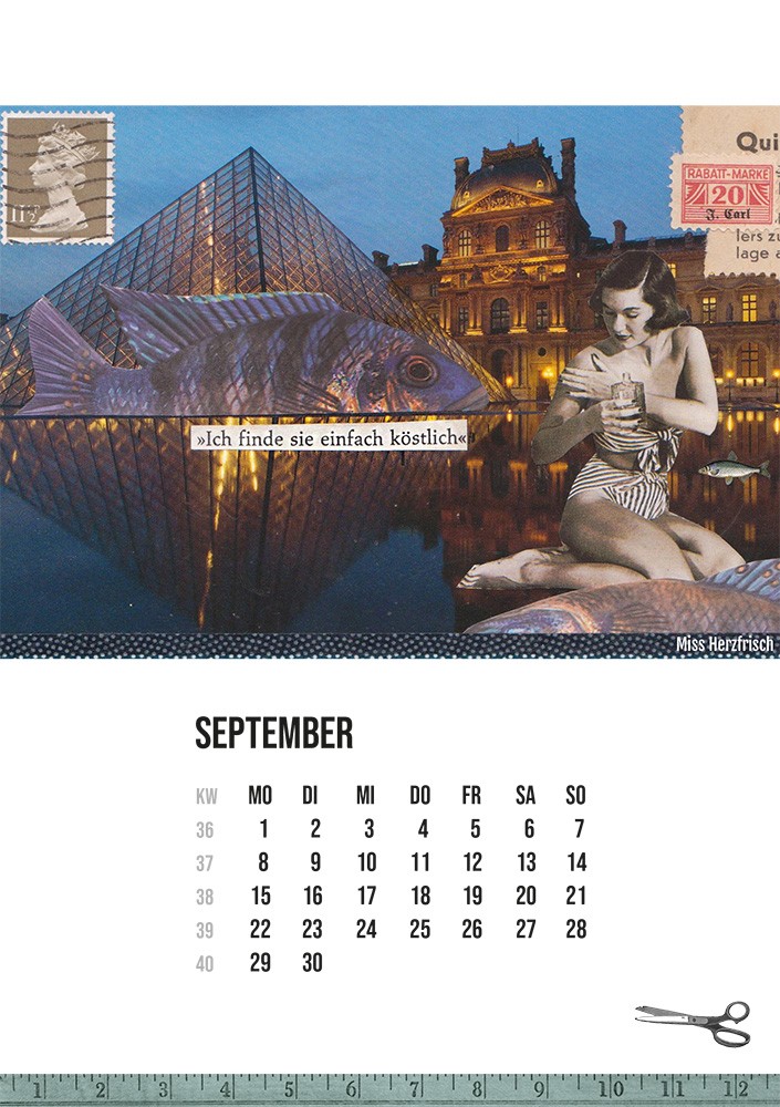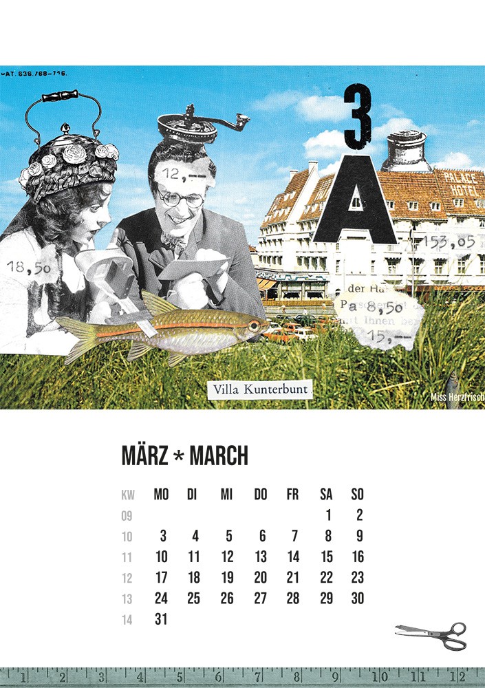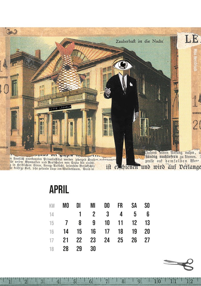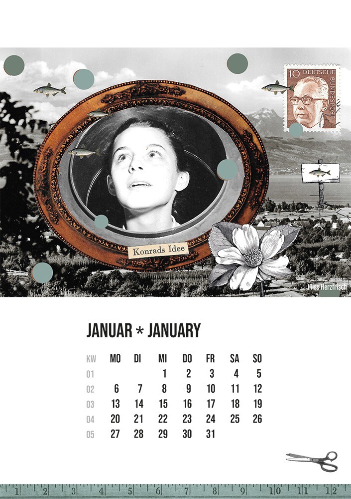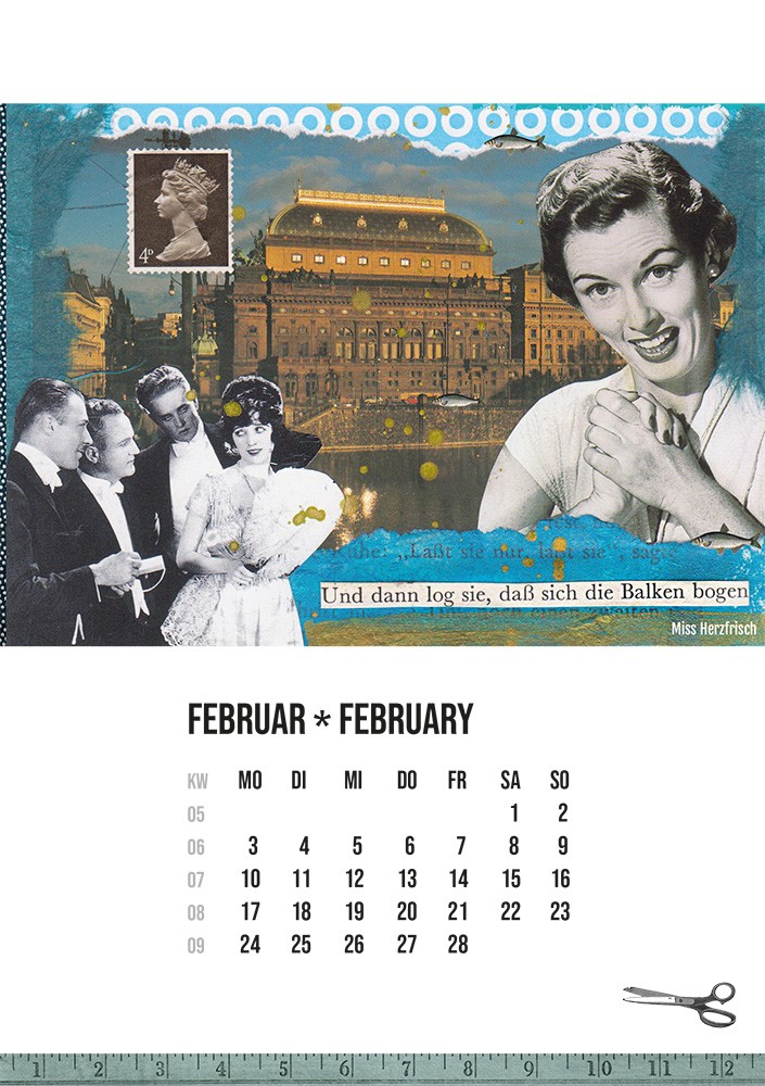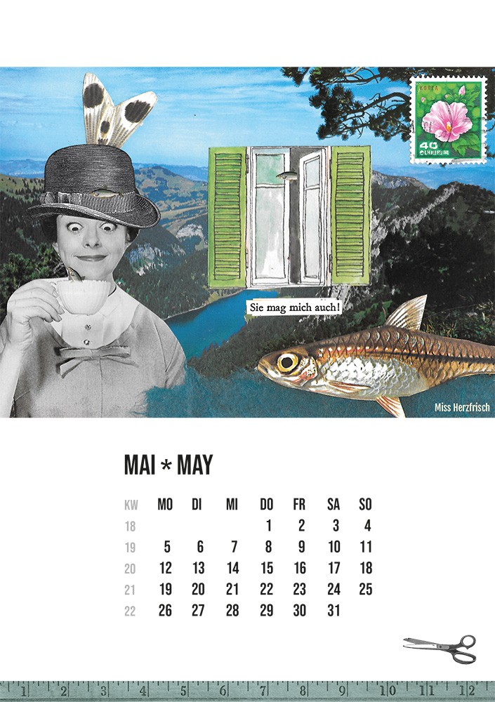- Ein bunter und fröhlicher Kalender mit 13 Seiten zusammengestellt aus meinen Postkartencollagen, um Sie jeden Tag zum Schmunzeln zu bringen.