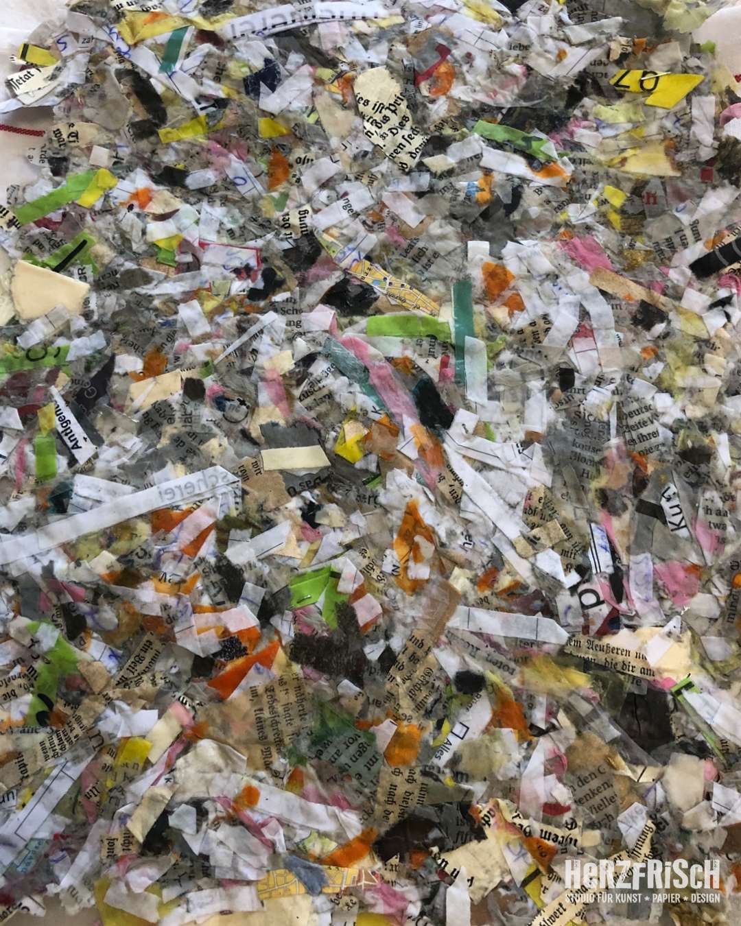 Wir zerkleinern altes Papier, rühren daraus einen Papierbrei und entdecken spielerisch, wie Recycling funktioniert.