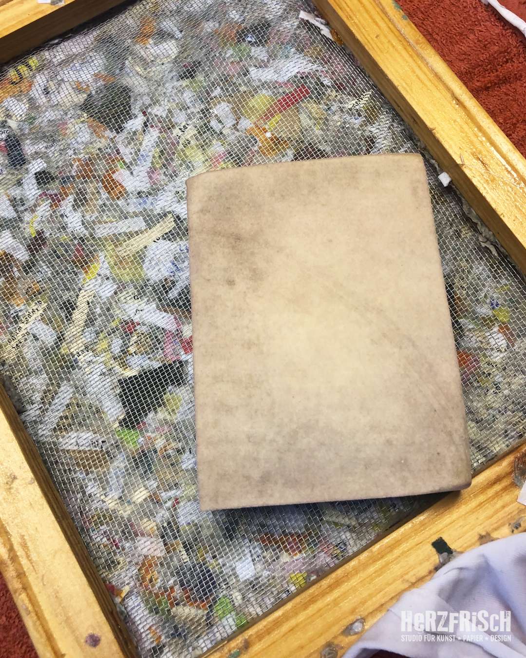 Mit Schöpfrahmen gestalten die Kinder eigene Bögen – verziert mit Blüten, Farben oder Glitzer für ganz besondere Unikate.