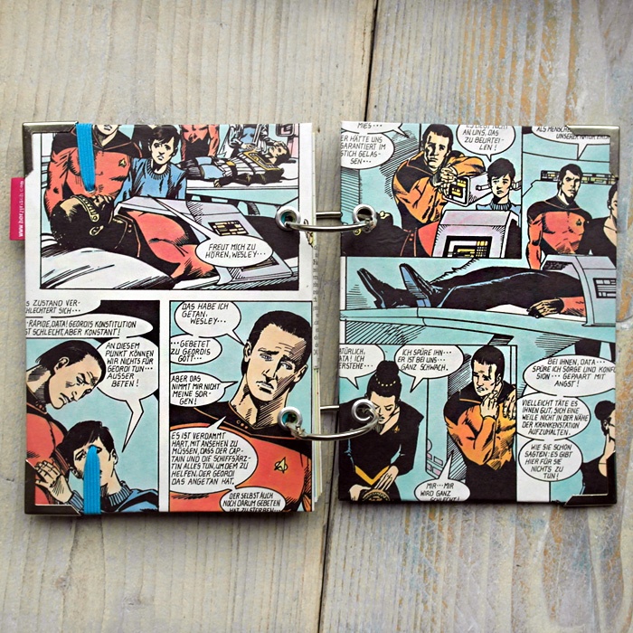 - der Umschlag ist aus Originalseiten eines Star Trek Comics gefertigt