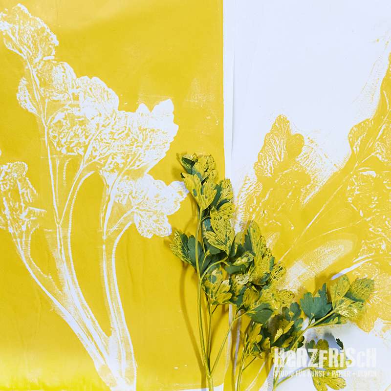 Meditative, kreative Experimente mit Acrylfarben und Gelliplatte