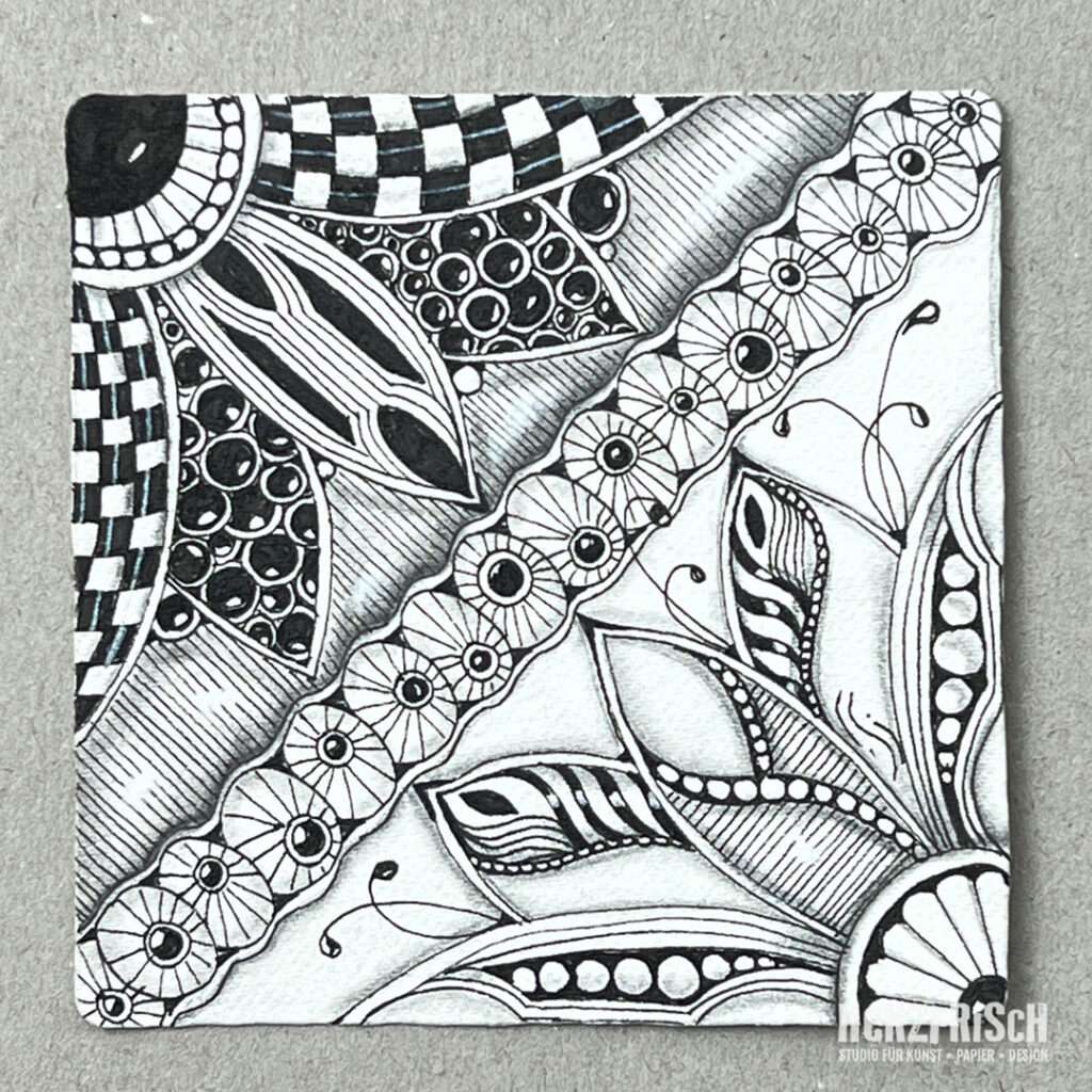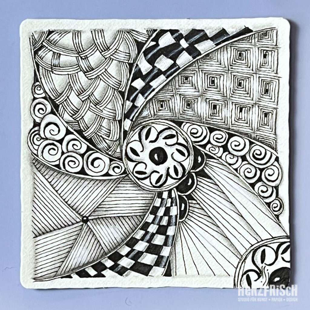 So begegnete mir ein Buch über die, aus den USA stammende, Zentangle – Methode. Ich war sofort berührt und fasziniert! Diese achtsame, meditative Art des Zeichnens hat mich seitdem nicht mehr losgelassen.