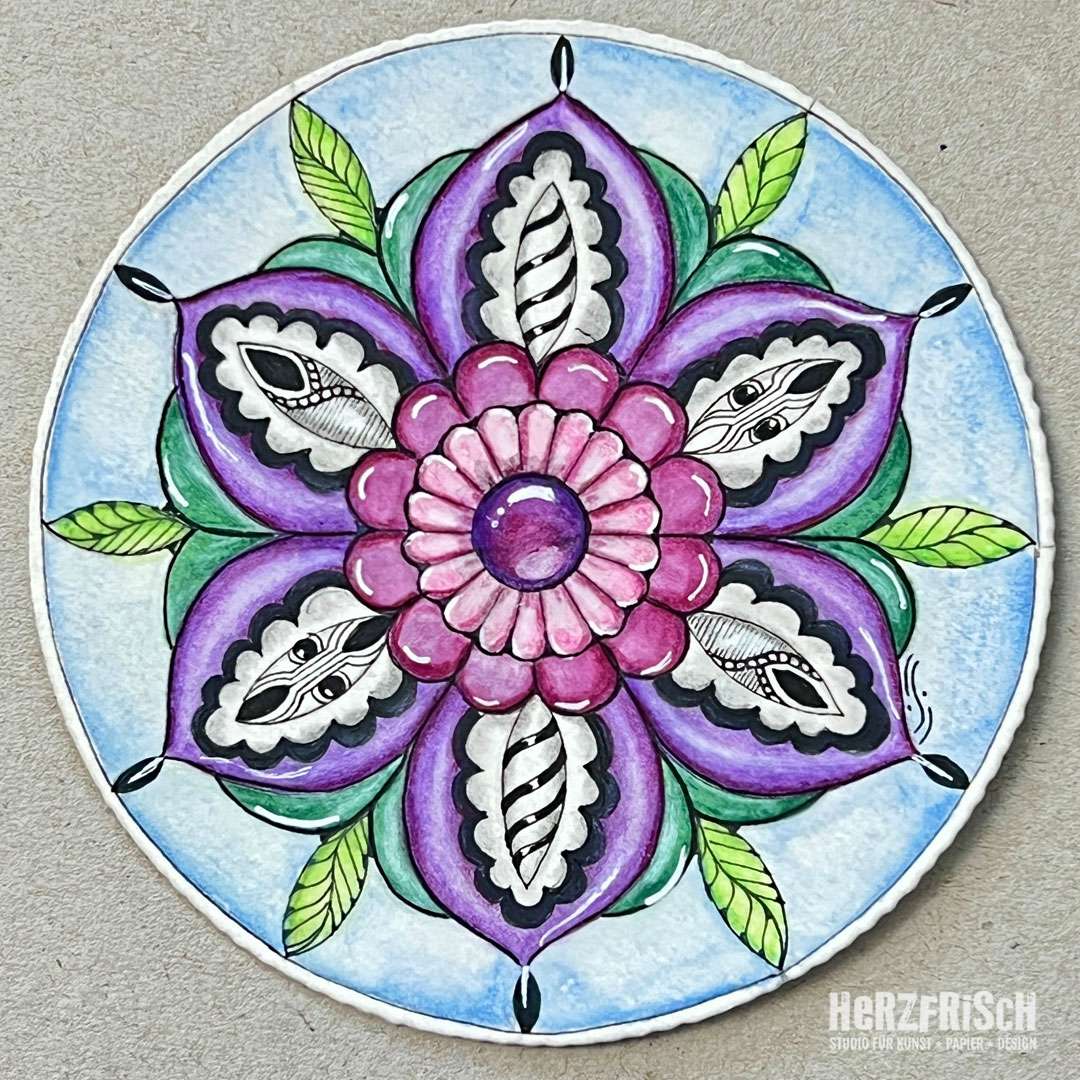 So begegnete mir ein Buch über die, aus den USA stammende, Zentangle – Methode. Ich war sofort berührt und fasziniert! Diese achtsame, meditative Art des Zeichnens hat mich seitdem nicht mehr losgelassen.