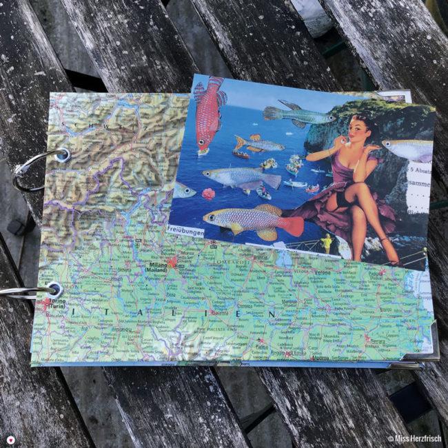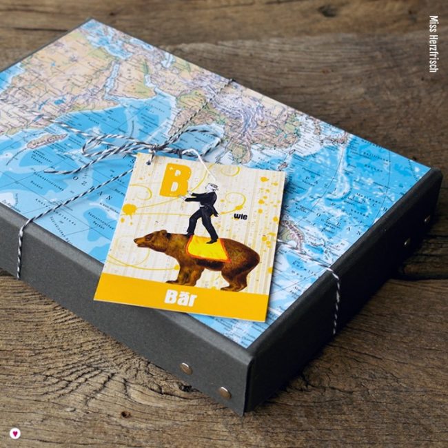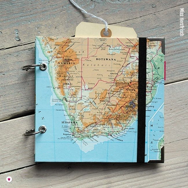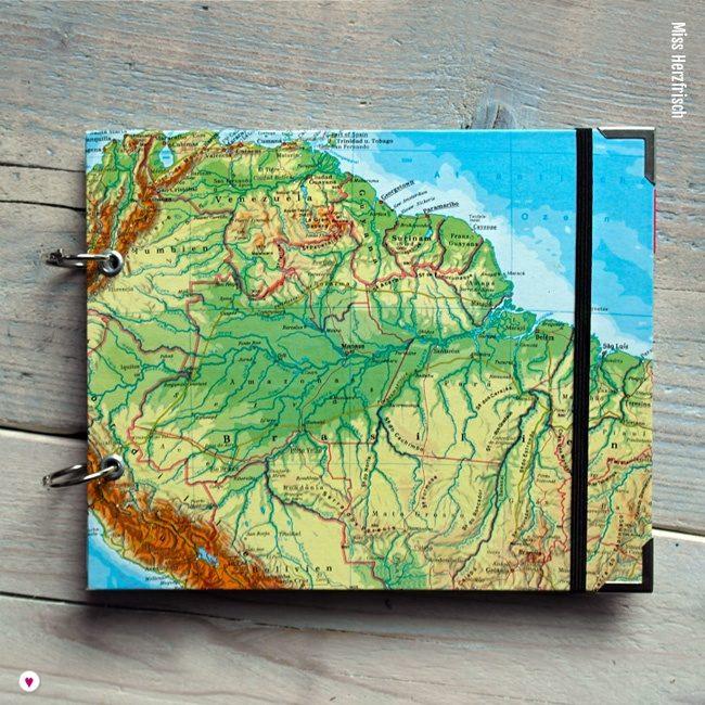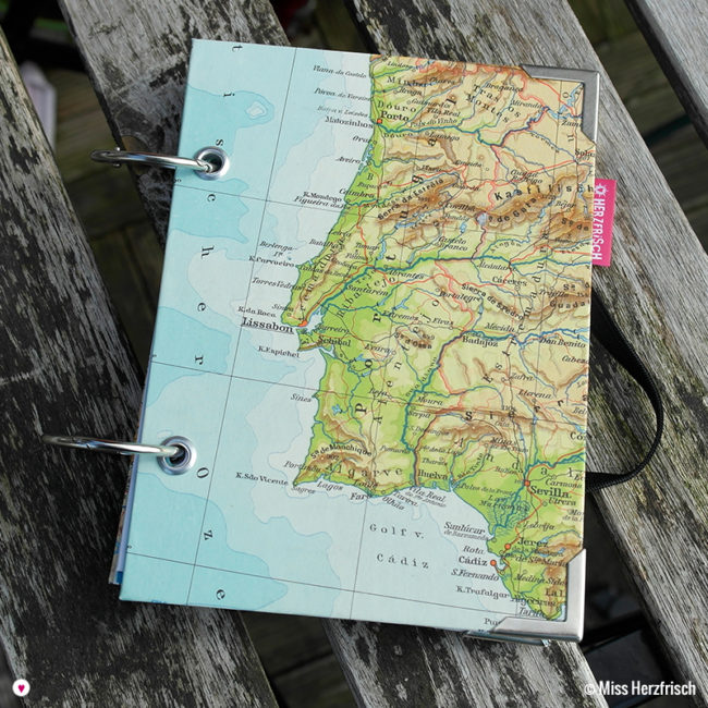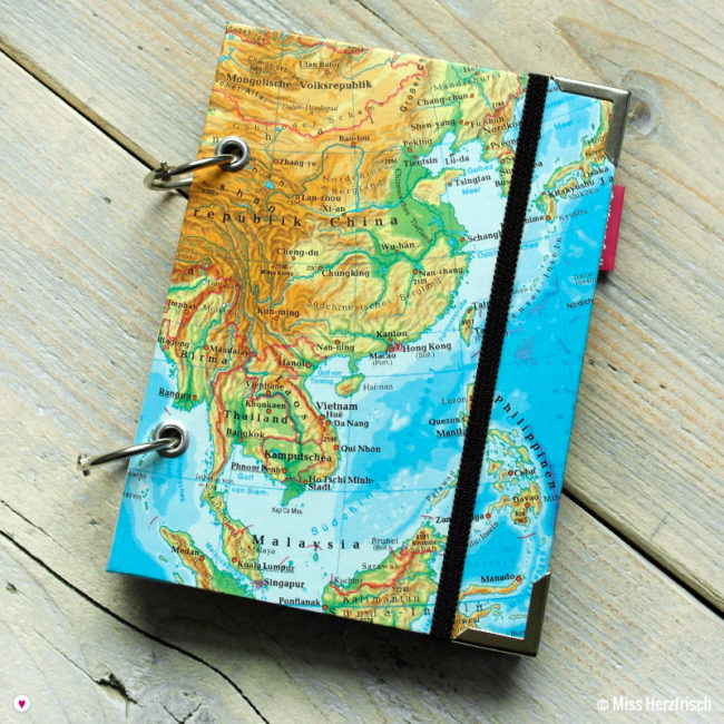 - der Umschlag ist ist vorne und hinten mit einer Originalkarte deines Wunschlandes bezogen