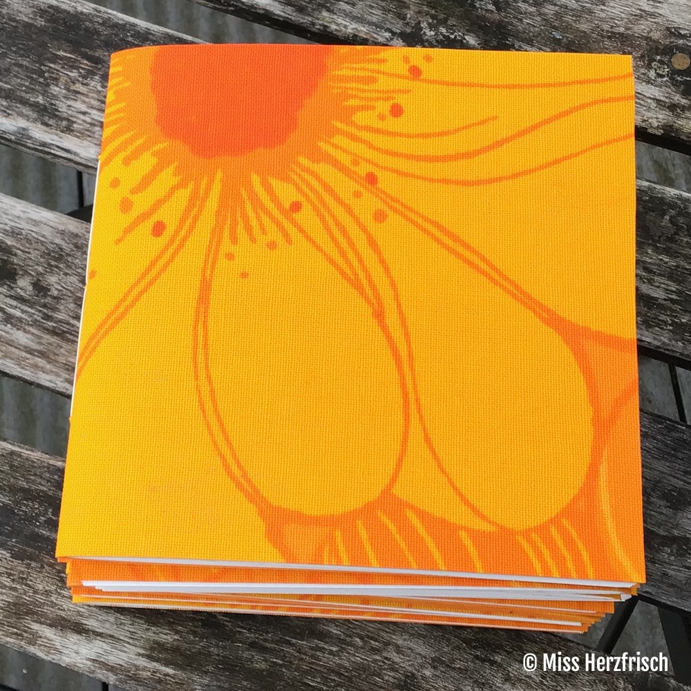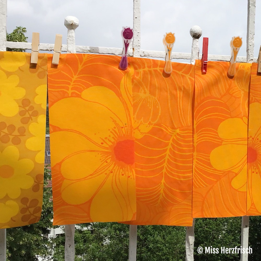 Bei all dem Grau gibt es jetzt wieder die sonnigen Ideensammler aus 70iger Jahre Rollostoffen im Studio Herzfrisch Laden und im Onlineshop mit viel Platz für sommerliche Collagen, Skizzen und Fotos.