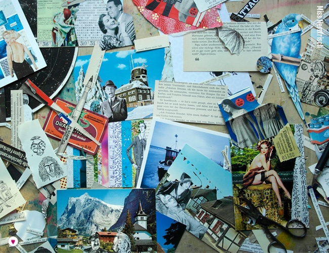 Diesmal gibt es kein festes Thema und keine Größenvorgabe, sondern das was mir gerade „über den Weg läuft“. Außerdem eine gute Gelegenheit, meine Schubladen mit den vielen angefangenen Collagen mal zu leeren und die Collagen fertigzumachen…